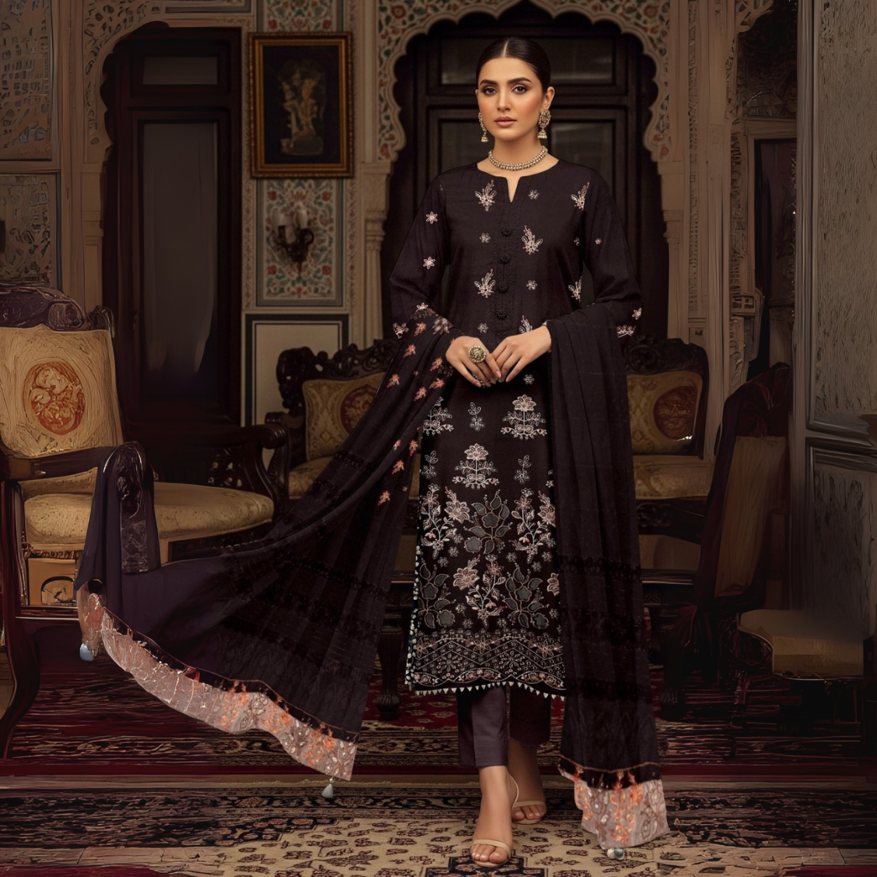 Dupatta: Pashmina wool kashmirir Shawl.