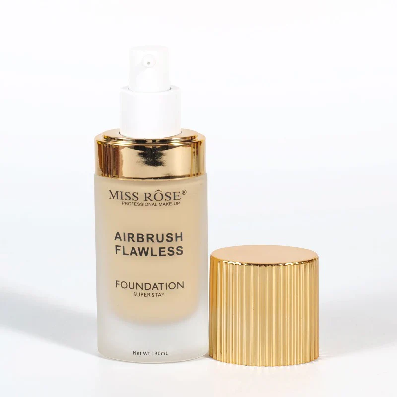 Achieve flawless, long-lasting coverage with Miss Rose Air Brush Flawless Foundation. This 30ML bottle features an easy-blend, smooth texture that glides effortlessly onto your skin. Infused with stearic acid, it ensures a silky finish and excellent skin compatibility. Perfect for all-day wear, it provides a seamless, natural look that stays put. Ideal for all skin types.